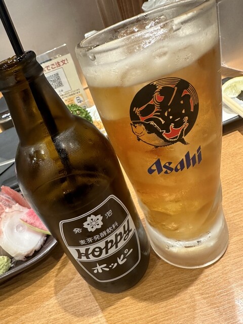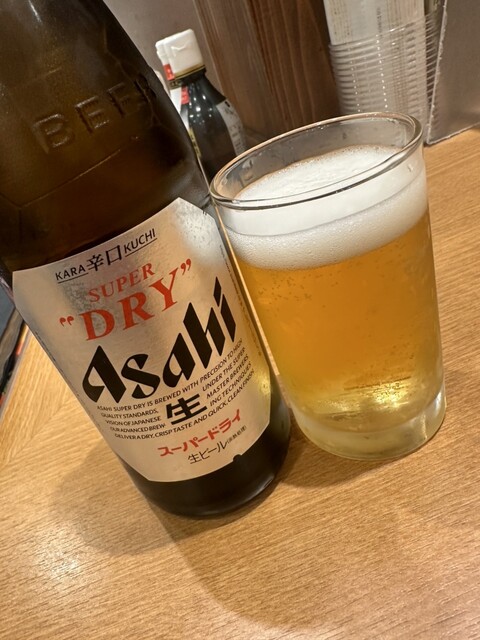まずはスーパードライの中瓶で喉洗(^O^)ノ