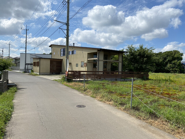 お好み焼き本舗さんの信号を西に進む、シンゴスターさんの交差点を左折、約500m真直ぐ南方向に進む、Y字路(ダンロップの看板が目印)を右折、2番目の側道を左折(田んぼの脇)、目の前の斜め屋根の建物です。