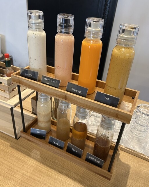 うわ!店内女子率100%、流石はサラダランチが人気店ですね。皆さんお好みのサラダボウルに、思い思いのドレッシングを使って召し上がっています