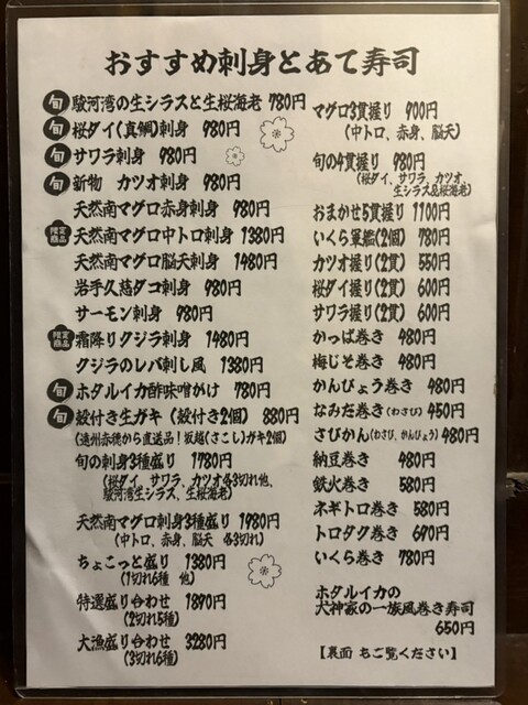 桜ダイ・サワラ・カツオ・駿河湾生シラス・生桜海老。