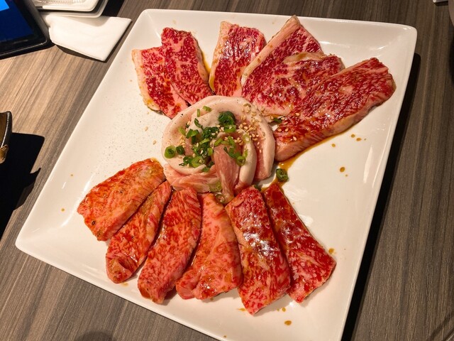土浦駅西口ロータリー脇に立つテナントビルに入居している焼肉屋さんです。宮崎牛を売りにしていて、店頭には黒光りしたでっかい宮崎牛が鎮座ましましております。 ◯宮崎牛焼肉コース ... 詳細を見る