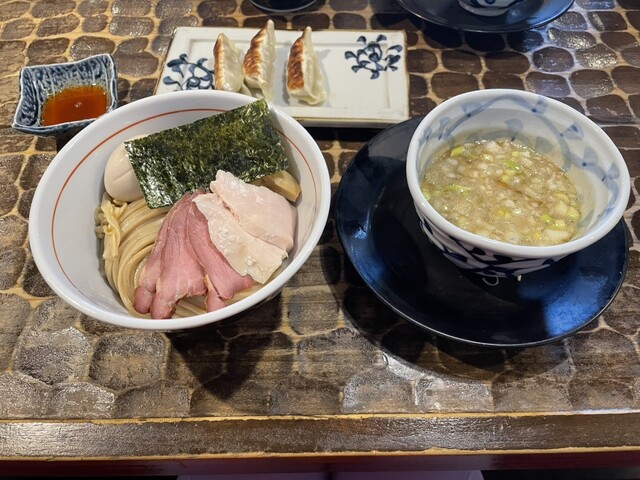 龍介つけ蕎麦(大:350g)1,380円 最寄駅(JR土浦駅)からは大分距離があるので車で14時過ぎに訪問!中待ちも含めて10人ほどの並びです!先に食券を購入して列に並びます。つけ麺の有名店ということでつけ麺を選びましたが、まぜそばやラーメンを頼む人も多かったです。あと餃子やチャーマヨ丼などのサ... 詳細を見る