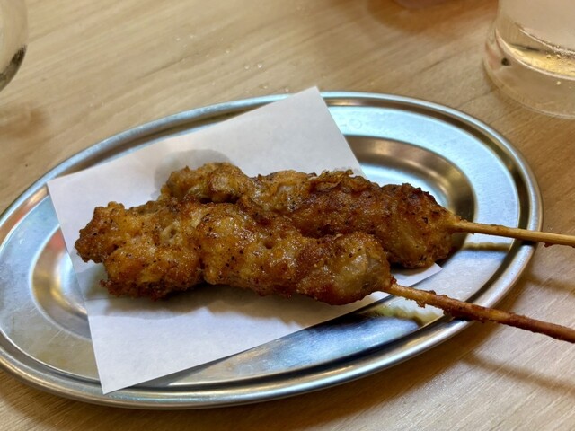 スパイスで味付けた鶏肉を 串に刺して揚げた お店名物のスパイシー串。