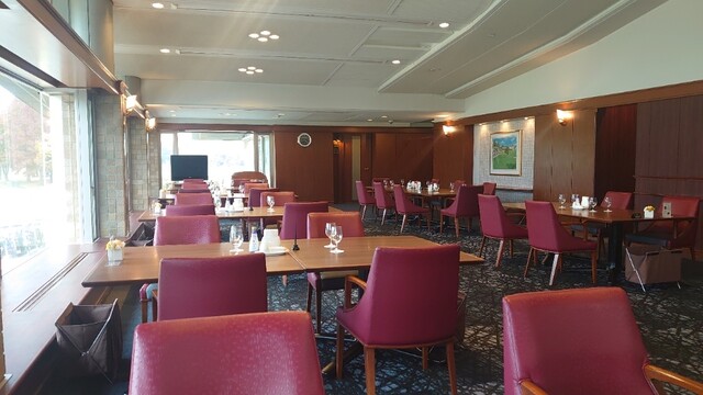 そんな傷心アマチュアゴルファーを癒してくれるレストランは、朱色の椅子が印象的な高級感のあるスペースとなっていて、トーナメント開催時のメモリアルな掲示物も雰囲気を盛り上げています。