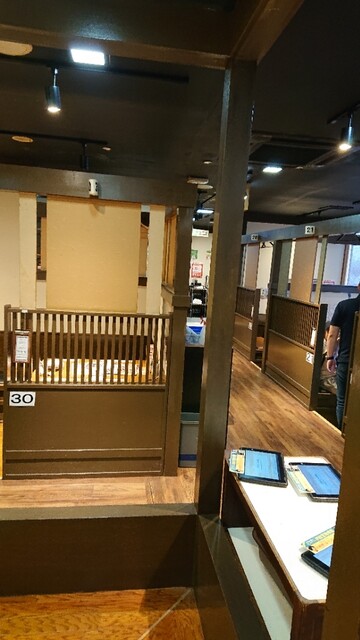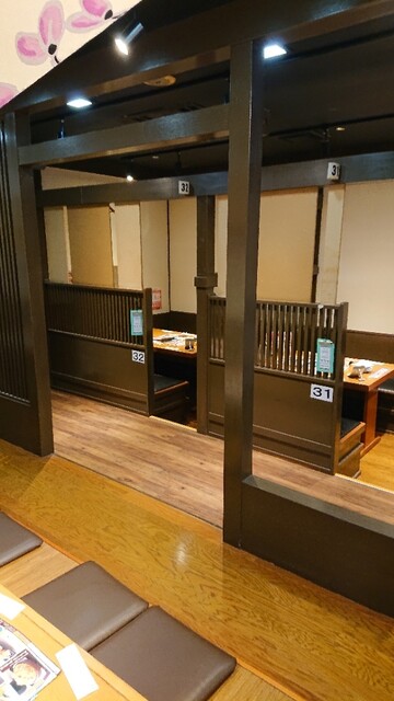玄関の向こうには、洗練された和の空間、ゆったりとした個室感覚でおくつろぎいただけるのが「魚民」。お刺身、郷土料理、お寿司など和食中心のお料理をお楽しみいただけます。 ほんのりと漂う木の香りに、心和むひとときをお楽しみいただけます。