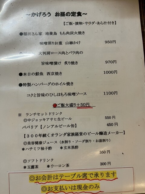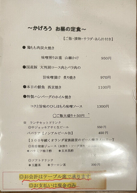 ※ランチのお会計カード不可(現金のみ)