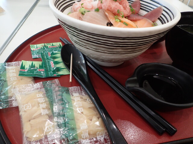 海鮮丼の方はそこそこうまい。やはり本家の回転ずしのネタの良さを生かした商売が機能しているってことですね。
