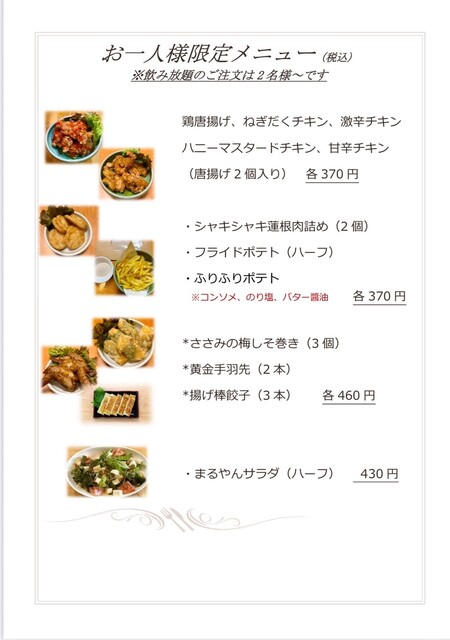 カリッと揚げたての美味しさが堪能できる唐揚げをぜひご賞味ください。その他、お酒に合うおつまみをたくさんご用意しております。お一人様メニューも多数ご用意しております^^