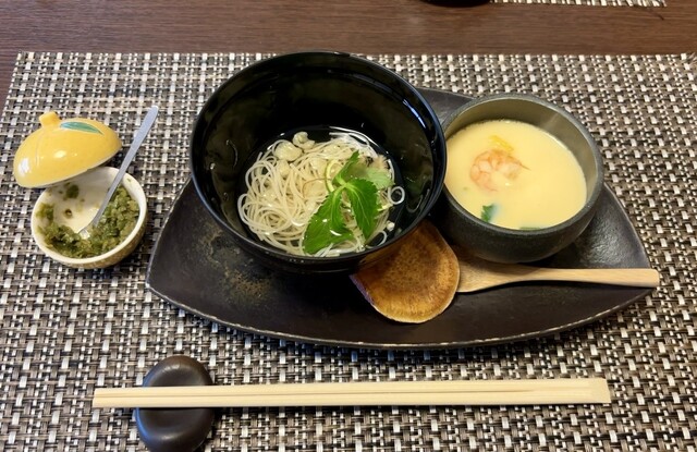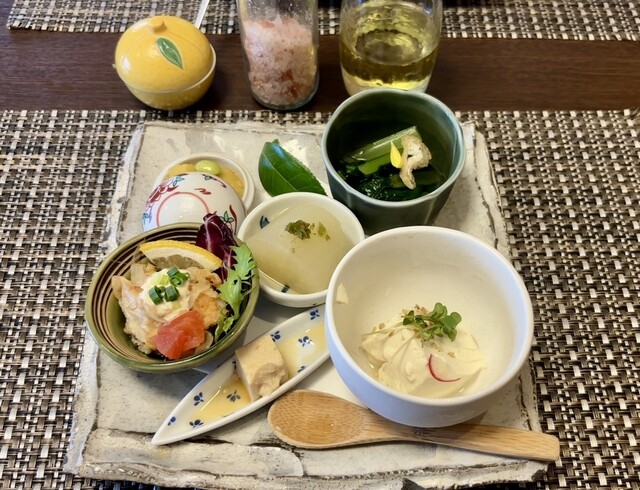 2.前菜5種 京都南禅寺のおぼろ豆腐、おひたし