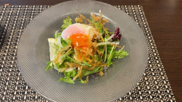 4.副菜2 水菜と豆腐のサラダ温泉玉子添え