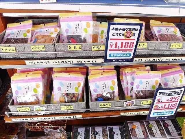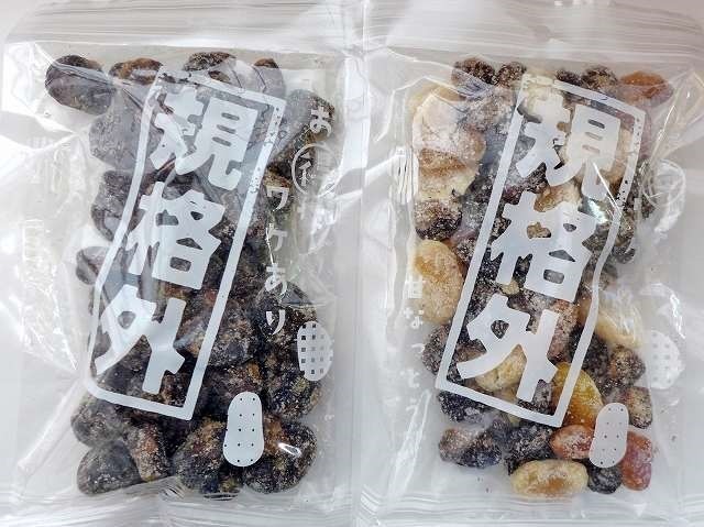 芋なっとう(規格外)?円、紫芋甘なっとう(規格外)?円、ぬれ甘納豆小豆(規格外)?円を購入。