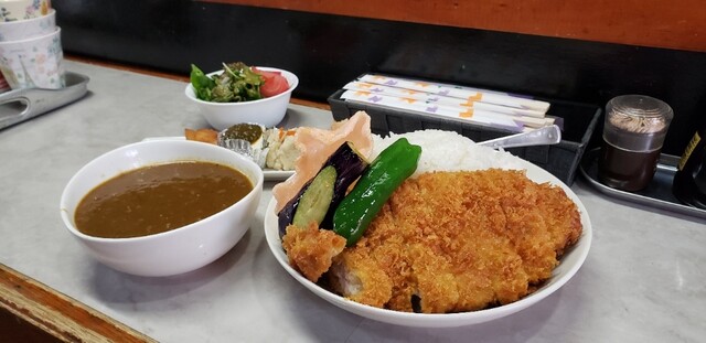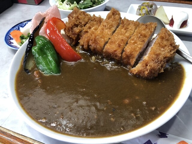 大人!?のカレー目当てに 駐車場は他と共通で店舗前と裏側に 店内入ると小上がり3卓とカウンター4席でカウンター1席は作業するから一番左側は邪魔になるかも お昼を過ぎてたけど小上がりが満席なのでカウンターへ たけちゃんとトークをするならカウンターがオススメ メニューを軽く見て ... 詳細を見る
