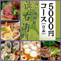 魚に肉に、美味しいものならなんでもござれ!浜右衛門だからこそご提供可能な旬の味覚がてんこ盛り、飲み放題も付いて大人数様にもピッタリな超豪華フルコースです。