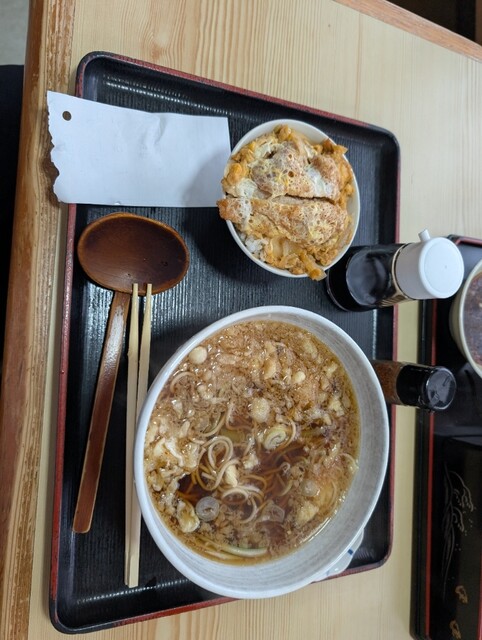 メニューを見て『かつ丼セット 1,400円』を注文して『ざるそば』をお願いして待ちます♪