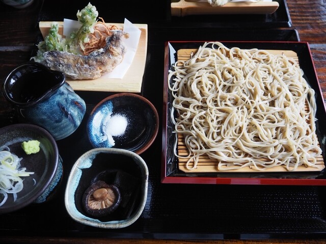 暖簾をくぐると、平日のまだ昼前とあって広々とした店内には先客は一組だけである。名物の「やまめせいろ」1,750円をオーダーすると、早くも10分少々で着笊した。“やまめ姿揚げ”は...