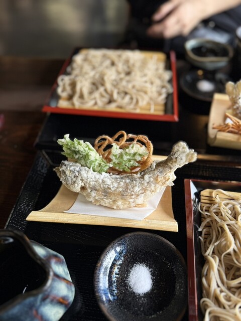 茨城をドライブ中に立ち寄った「そば道場 久慈川 翁」で、舞茸天せいろ(妻は海老天せいろ)と、やまめの姿揚げをいただきました。手打ち蕎麦はコシがあり、舞茸の天ぷらは香り豊かで、サクッとした衣と絶妙にマッ...