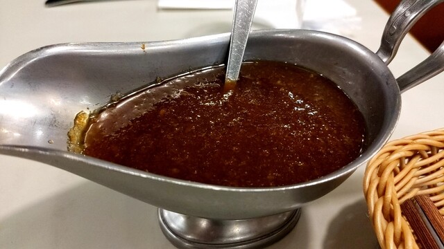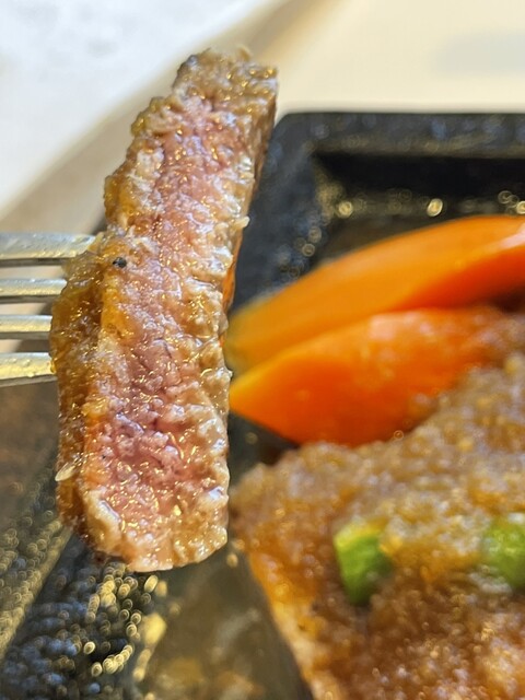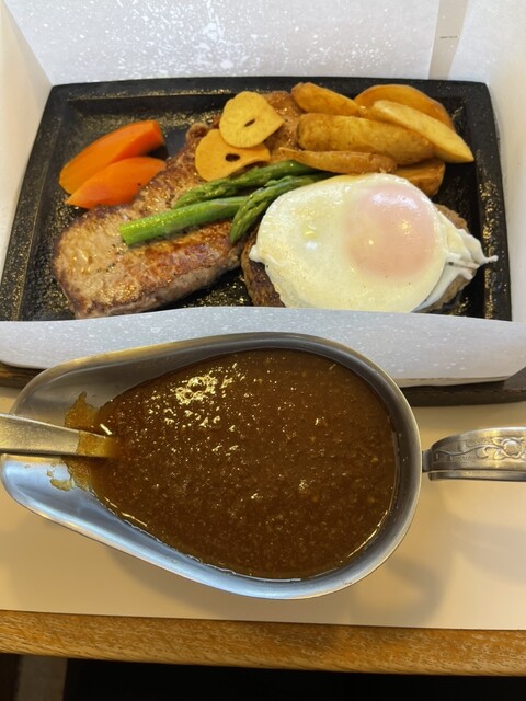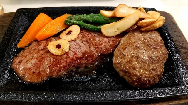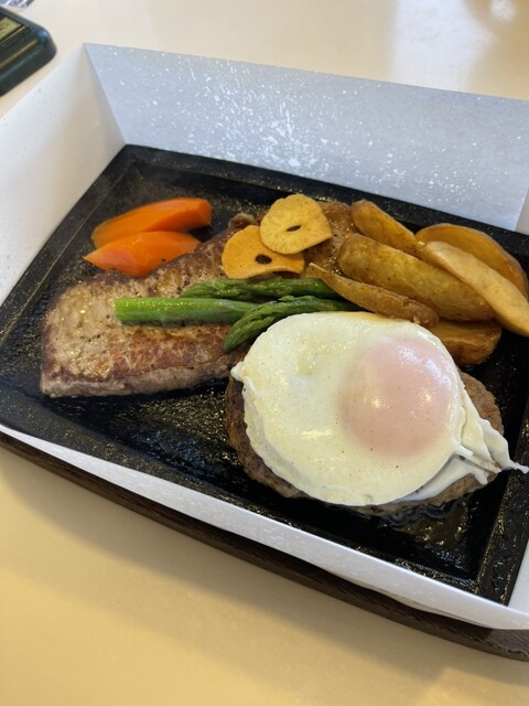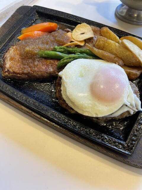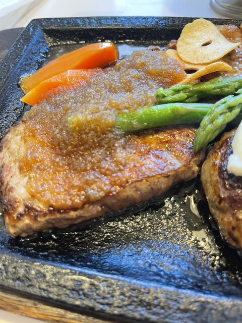 ファミレスの一種かと思い入ったが、ステーキがメインのお店で 前の方のページには高価なメニューが並んでいる。一番安めのセットを注文したが、ステーキも柔らかく、ハンバーグ、付け合せも美味しかった。サラダも新鮮。味はまあまあだった。