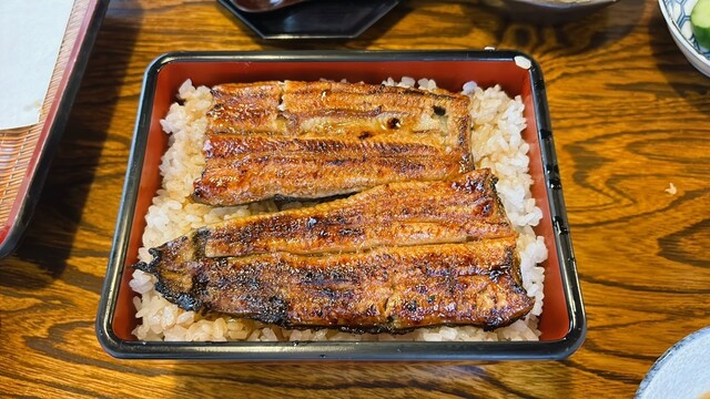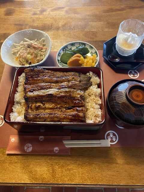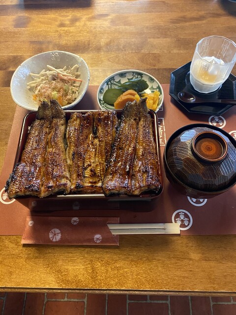 茨城県古河市で鰻店はしご(連食)。一軒目の「割烹川魚料理 たたみ家」に続いて訪れたお店。畳の座敷席が苦手なのでテーブル席が空くまで車内で待たせてもらいました。15分位待ち漸く案内されました。ご家族経営のアットホームな雰囲気。注文したのは鰻重(3/4)、白焼き(3/4)、肝焼き。二軒目でしたのでご飯は... 詳細を見る