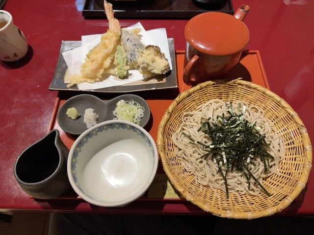 平日ランチ12:30に訪問 駐車場が店前4台、店脇8台と激戦必須 何とか駐車出来たが狭くて苦慮した オーダー 天ざる蕎麦大盛1820円 10分ほどで着弾 薬味が、ネギと... 詳細を見る
