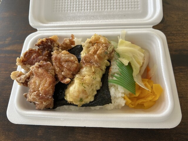 唐揚げ弁当(唐揚げ5個)530円、めんから弁当(明太子、のり、ちくわ1個、唐揚げ3個)500円とコンビニで買うよりもリーズナブル。他にも色々な種類あり。唐揚げだけも売っているようです。唐揚げはサクサクしてて食べやすいサイズ。たくさん食べる人にはお米とかの量が少ないかも?