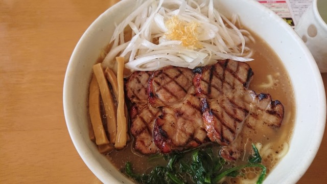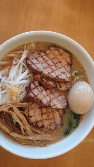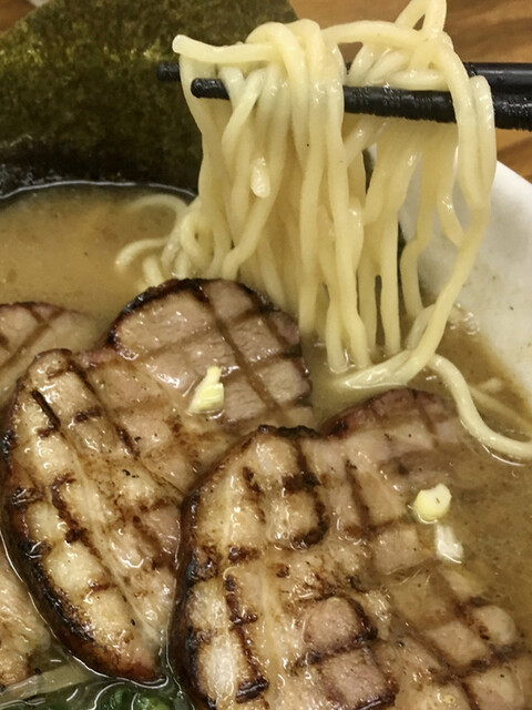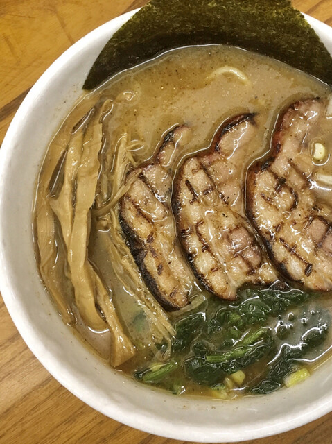 分厚いチャーシューが4枚も乗ってるインパクトがすごい...