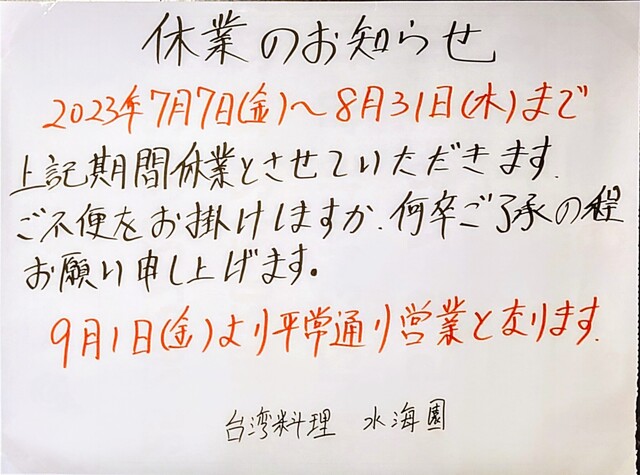 2023年7月7日から8月31日まで長期休業 (by m’s)