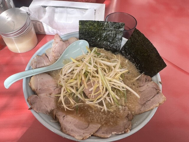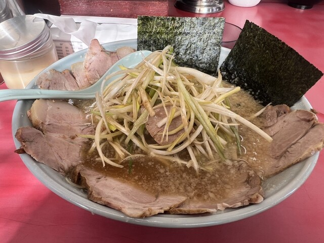 ネギチャーシューメン 990円 特製手作り餃子 380円 背脂が浮遊するスープが恋しくなり、数年ぶりに赤暖簾のラーショ石下店に伺った。 時間は午後5時30分。夕食前の時間帯。客足が鈍る時間帯を選んで来る。 ・・・そんな事は無い。ただ、仕事帰りの『寄り道ラーメン』。 通し営業なの... 詳細を見る