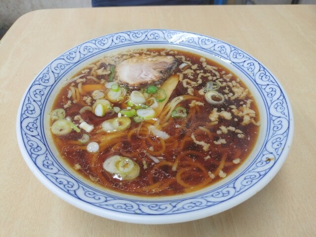本当に濃い口醤油が効いたスープで、麺は細麺、チャーシューが1枚、メンマとネギ...