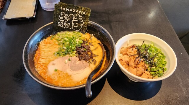 甘えび香味煮卵らうめん 1,050円/辛子高菜ご飯 200円 豚骨ベースのスープに、甘えびの香ばしい香りが重なり、旨みが広がります。細麺がスープによく絡み、えびの風味と小麦の... 詳細を見る