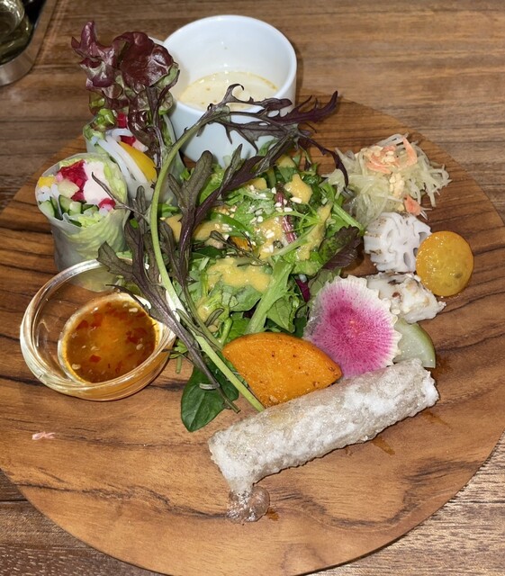 今年最後の休日のランチはこちら。 アジアご飯セット 2150円 前菜プレート 生春巻き、揚げ春巻き、有機野菜、野菜スムージー 揚げ春巻きは中ひき肉でしゅう... 詳細を見る