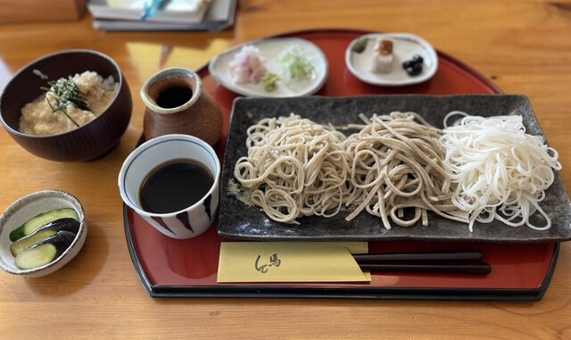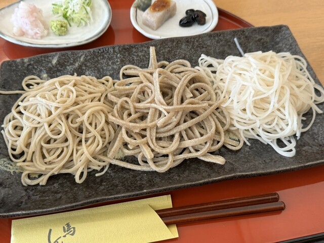 店内はテーブル席のみ。年配のご夫婦で昼のみ営業されてます。メニューは3種の蕎麦で、二八蕎麦、十割蕎麦、更科蕎麦があります。...