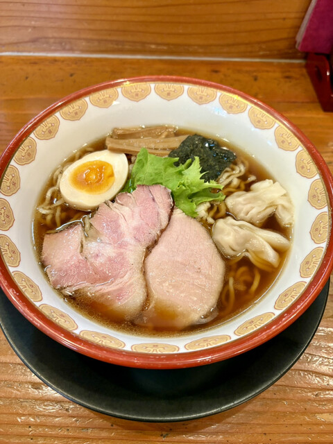Theラーメンて感じの中華そば。醤油の鶏とか買ベースの出汁でめっちゃ美味しかった!チャーシューも2種ついてるし、ワンタンもついてて、特に薄めのチャーシューが好みやった!18じ...