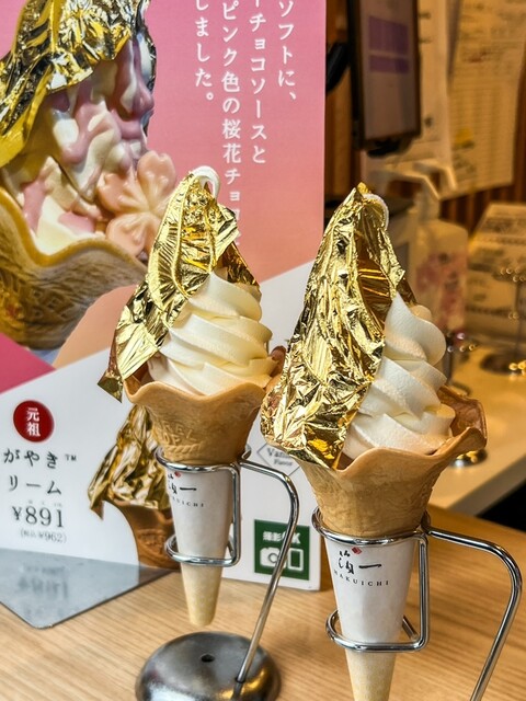金沢城公園からひがし茶屋街へ向かう途中に「箔一」さんを発見。金箔や工芸品を扱うお店です。丁度並んでいなかったので、金箔ソフトタイム♪ スタッフさんが目の前で金箔を剥がしてソフ... 詳細を見る