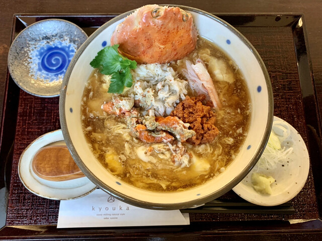 11月の上旬に蕎香さんのSNSからいつものように期間限定メニューの案内が届いてました。それは、香箱蟹の玉子とじあんかけそば。