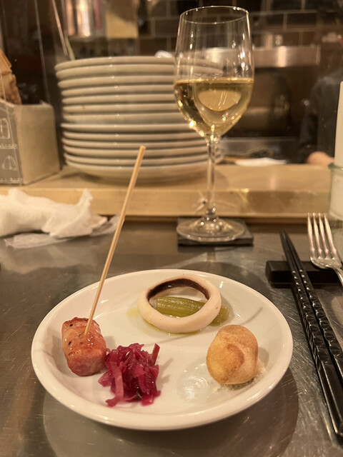 1階は、L字型のカウンター席 と 壁側に、I字型のスタンディング(立ち飲み)コーナー 2階は、テーブル席 選択に困るほどラインナップされているソーセージ と熟成肉 肉料理に力を入れていると思いきや 魚介と野菜も旨い! とても旨い! スモークの加減や魚醤の使い方が面白く 付け合わせも充実 注文した順に提供されますので 食したい順序があるなら、注文時に伝えま... 詳細を見る