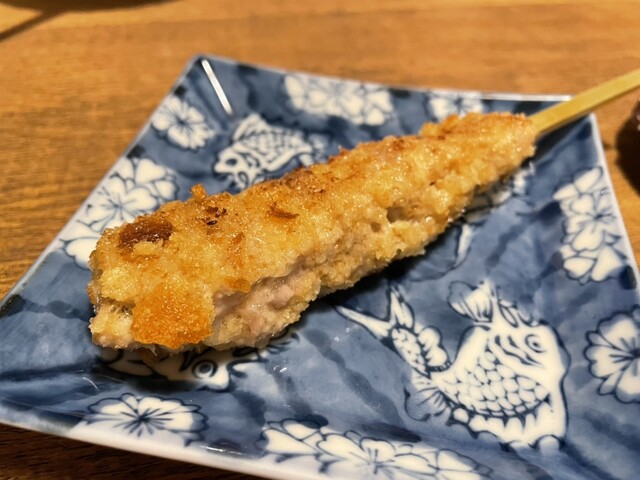 唯一の串焼き「つくね」は周りにまぶしたパン粉が焼きの途中で滴る油でこんがり焼き揚がって唯一無二な食感で...