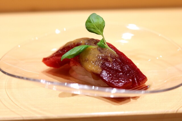 日本の鮨界を牽引する、伝説の職人・森田一夫氏が板場という舞台に立つ「小松弥助」。確かな目利きで厳選した食材を用いた、季節の移ろいが映える優しい鮨を提供している。研ぎ澄まされた巧緻的な所作によって握られる、心よりの一貫。その命を吹き込まれたかの様な瑞々しい味わいに、食する者は圧倒される。現在は紹介制をとっているため、ご縁も必要になる「小松弥助」だが、鮨を愛する者として一度は訪れておきたい名店だ。
