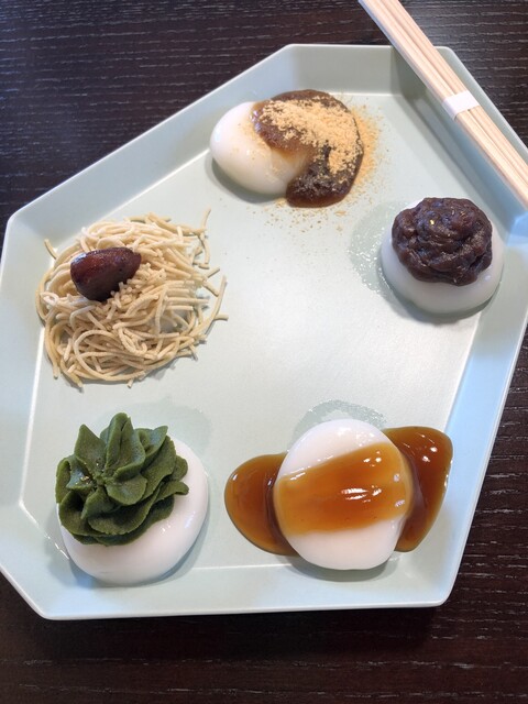 【注文品(8%消費税別)】 (店内飲食) ・武家屋敷プレート:900円 ・白玉プレート:700円 ・わらび餅(単品):270円 ・抹茶ラテアイス:500円 ・りんごジュース:400円 ・ソフト大納言:460円 (持ち帰り) ・きんつば(1個):160円 ・くるりと金澤(3個入... 詳細を見る