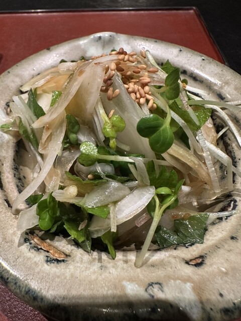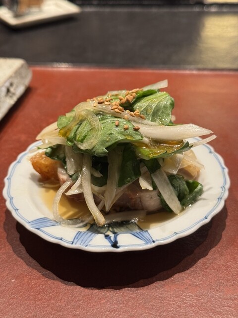 高坂鶏のももたたきのゴマポン酢合え