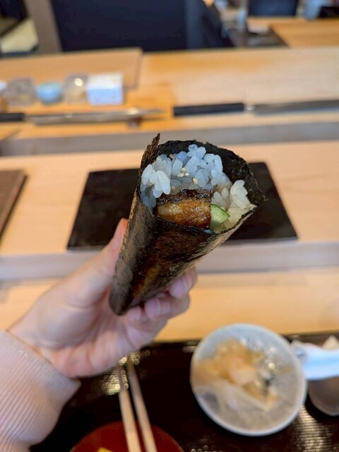 うなぎ手巻き寿司 (by お店)