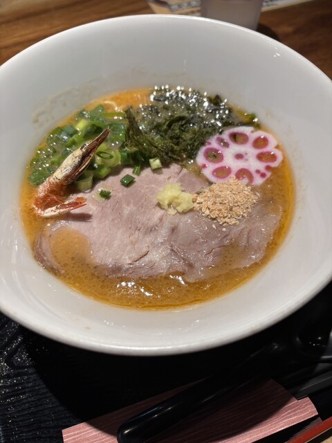 久しぶりに金沢の晩御飯で寄らせていただきました つけ麺より普通のラーメン派なので濃厚甘えびラーメン 味玉を注文です 常連さまパスポートで厚切りチャーシューもつけます 注文して... 詳細を見る