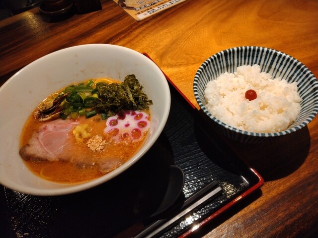 平日のもろお昼時に訪問しました〜♪店内は半分くらい埋まった感じ。食券機は入った左側に。 入った途端、エビの匂いがしてきて、あ、屋号の通りなんですねーって感じでした。店内はジャジー... 詳細を見る