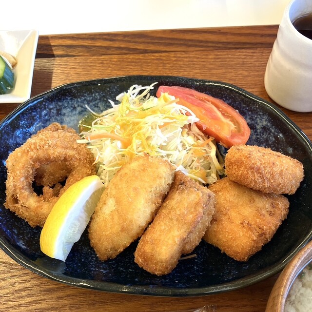 大野町のヤマト糀パークにある発酵食品のレストランです。ガラス張りの明るい店内で海に面したテラス席もありました。 港の魚フライ定食はサワラ、タラ、イカのフライが主菜。衣が薄くて... 詳細を見る