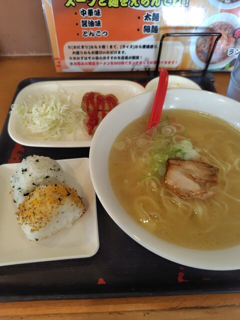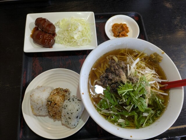 ラーメンとおかずにおにぎり3個までついて780円と非常にコスパの良いランチセットです