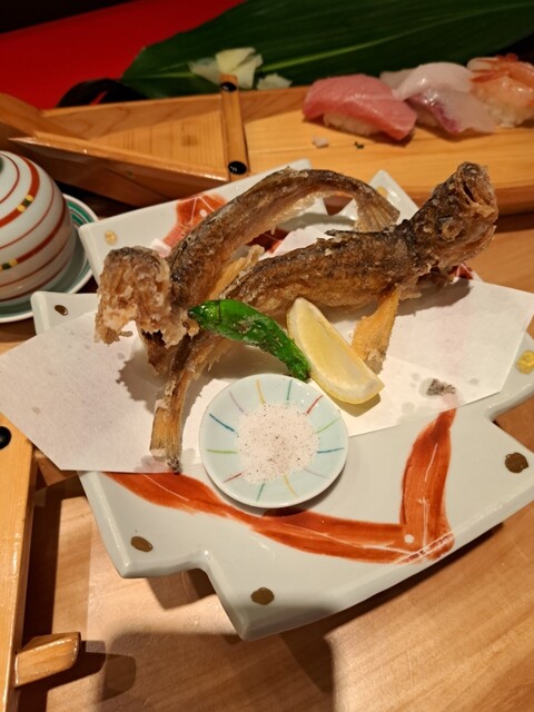 平日夜の初訪問です。地元で評判のお店と聞き、予約してコースを頂きました。 お品は、貝煮付の先付、刺身盛、茶碗蒸し、鱈西京焼、天麩羅とライスコロッケ、そして握り5貫でした。食材... 詳細を見る