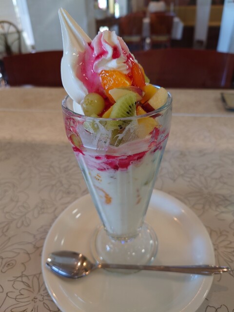 お菓子屋さんが経営してる感じのお店。 入り口を入ると和菓子やケーキが売られてます 奥がイートインスペースで… いろんな種類のパフェがメニューにあった。 まずはパスタ➕サ... 詳細を見る