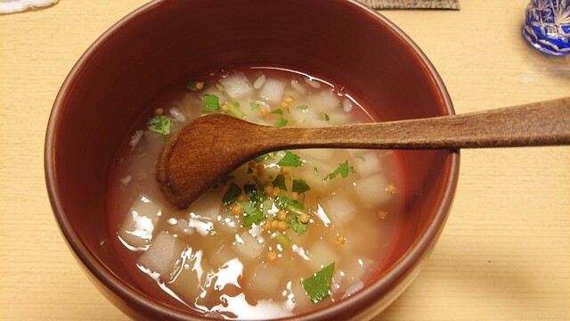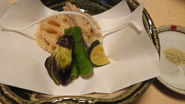 間際になり予定が確定されたので、予約できるか心配でしたが、カウンター個室が空いていてラッキー! 調理の様子が見えて逆に良かったです。 年齢とともに一回の食事で食べられる量が少なくなってきていて、今回は一番安い6,600円のコースでお願いしました。 品数は7品で「先付」「お造り」「揚... 詳細を見る
