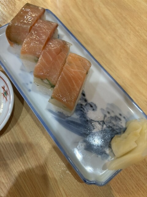 もうちょっと食べれそうだったので、押しずしのサーモン500円とカニ700円を注文。