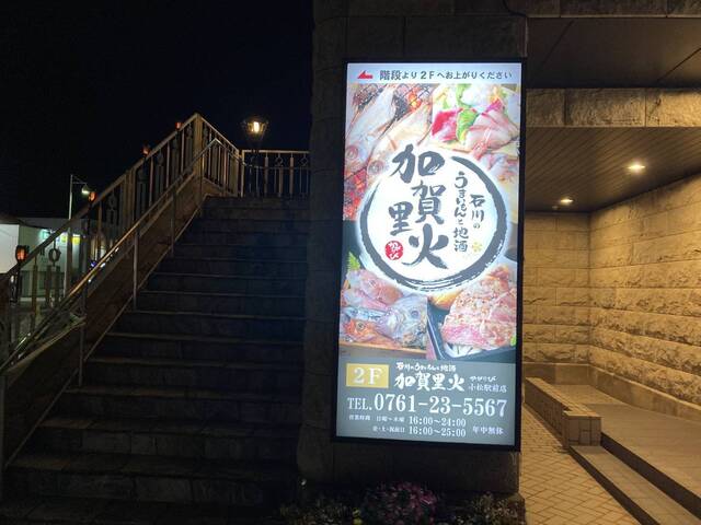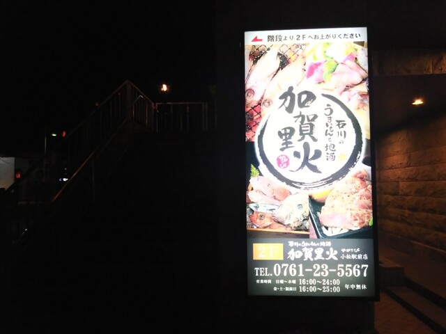その時間でも空いている居酒屋を調べたところ、『加賀里火 小松駅前店』が週末は深夜1:00まで営業とあります。