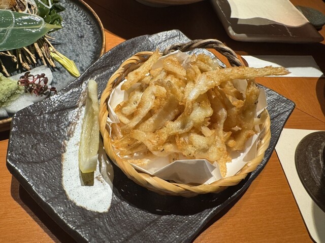 蓮根揚げもとても美味しかった!塩を付けて食べるスタイルだが…本当に美味しかった!